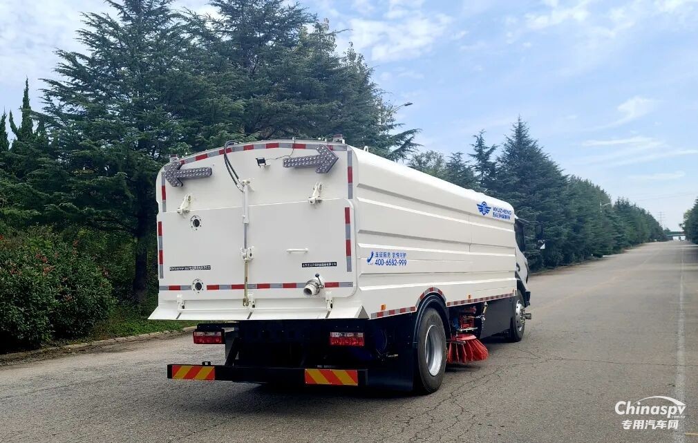 9方水+7方箱,高效續(xù)航6小時!五征18噸電動洗掃車賦能城市清潔