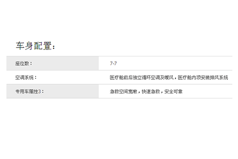 搭載大馬力柴油發(fā)動機(jī),加速性、動力性、通過性俱強;急救空間寬敞,快速急救,安全可靠。