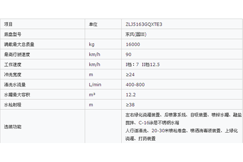 ZLJ5163GQXTE3型清洗車是公司開發(fā)的適用于城市道路清洗、灑水和綠化澆灌的低壓清洗車。該車采用配有康明斯ISDe185-30型發(fā)動機的東風(fēng)特種商用車公司的EQ5161GFJ7汽車二類底盤改裝,功率強勁,排放達到國Ⅲ標準。