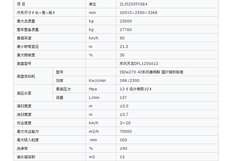 ZLJ5162TXSDE4洗掃車采用配有康明斯ISDE210-40型發(fā)動(dòng)機(jī)的東風(fēng)天錦DFL1160BX5汽車二類底盤改裝,功率強(qiáng)勁,排放達(dá)到國(guó)Ⅳ標(biāo)準(zhǔn)。采用東風(fēng)康明斯國(guó)二排放的EQB160-20副發(fā)動(dòng)機(jī),驅(qū)動(dòng)高壓水泵及工作裝置液壓系統(tǒng)。主要配套件實(shí)行全球采購(gòu),采用國(guó)際名牌高壓水泵、水安全閥,高壓噴槍、噴嘴及進(jìn)口關(guān)鍵液壓、電器元件,性能優(yōu)良、工作可靠。