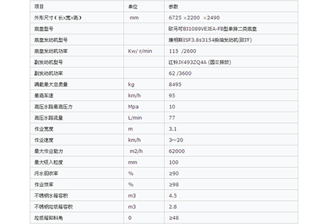 具有路面清掃、路面洗刷、高壓清洗、路緣石洗刷、污水回收、噴霧和道路隔離墻清洗等多種作業(yè)功能。