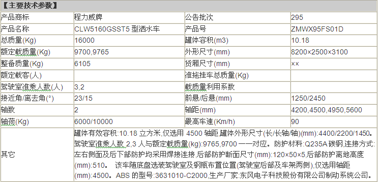 公告型號(hào) CLW5160GSST5