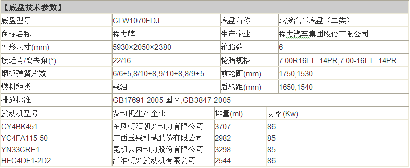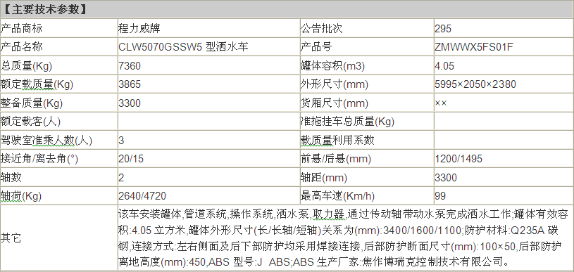 公告型號 CLW5070GSSW5