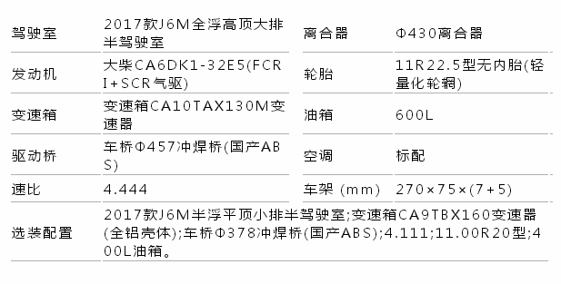 節(jié)油:采用CA6DK1發(fā)動(dòng)機(jī)、CA10TAX130M變速器、457輕量化后橋以及低風(fēng)阻流線型駕駛室,實(shí)現(xiàn)體系節(jié)油,節(jié)油效果明顯,百公里較競(jìng)品省1-2L;