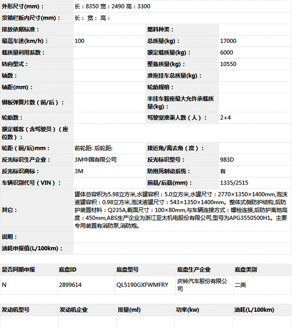公告型號 ZXF5170GXFPM60/W5