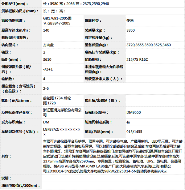 公告型號 TC5040XJC5