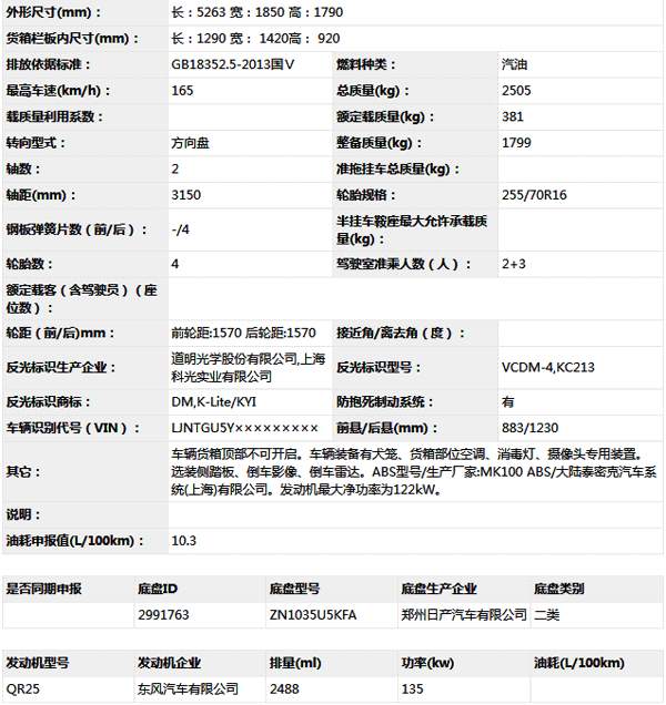 公告型號 ZN5035XJQU5K5A
