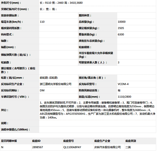 公告型號(hào) ZYG5101XZB5