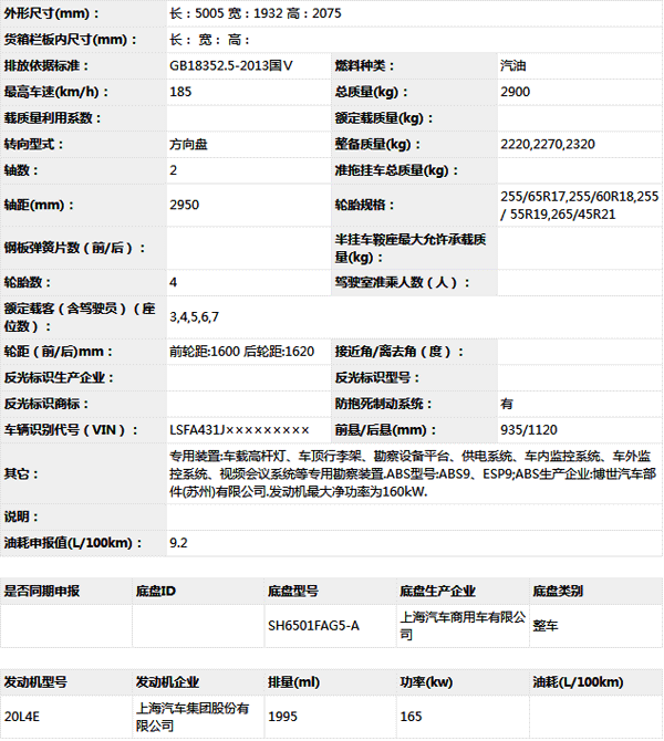 上汽大通SH5031XKCFAG5-A勘察車