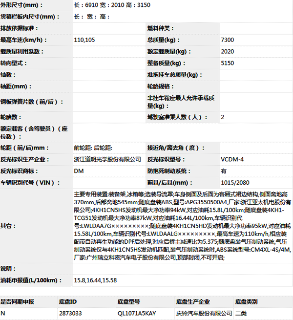 公告型號 SLT5073XZBF2W
