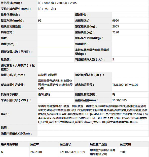 公告型號(hào) CHD5100TXSZQE5D