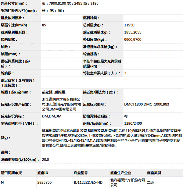 公告型號 BJ5122ZYSE5-H1