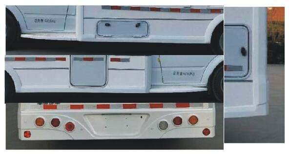 備注 車廂內(nèi)配備有桌子以及可由座椅轉(zhuǎn)換而來(lái)的睡具,炊事設(shè)施,淋浴設(shè)施,衛(wèi)生間,儲(chǔ)藏設(shè)施等,車廂門窗使用亞克力玻璃材質(zhì);后部可選裝無(wú)拓展廂,后部可選裝無(wú)窗戶,選裝無(wú)遮陽(yáng)棚寬為2270mm,選裝無(wú)頂置空調(diào)高度為2860mm;兩側(cè)及后下部為裙邊結(jié)構(gòu),滿足防護(hù)要求,側(cè)后下部防護(hù)與廂體為一個(gè)整體,側(cè)防護(hù)離地高度295mm,后防護(hù)離地高度395mm;ABS型號(hào):6C11 2M110A*,生產(chǎn)廠家:博世汽車部件(蘇州)有限公司.發(fā)動(dòng)機(jī)最大凈功率99kw;選裝多種形式的艙門和窗戶;乘客門樣式及位置的選裝;