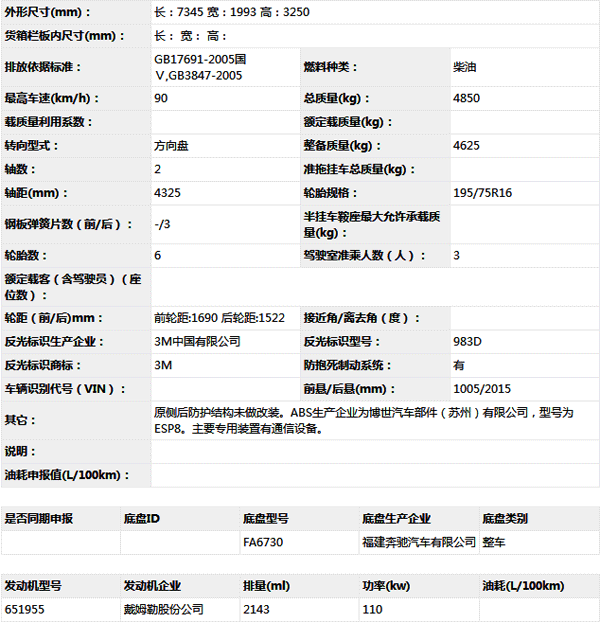 公告型號(hào) ZXF5050TXFTZ3000/B5