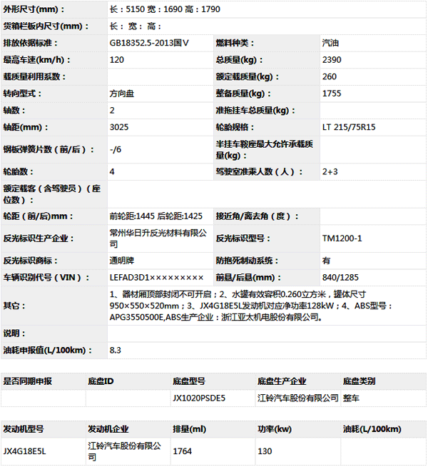 江西江鈴晶馬牌JMV5026GXFPW0.4水霧消防車