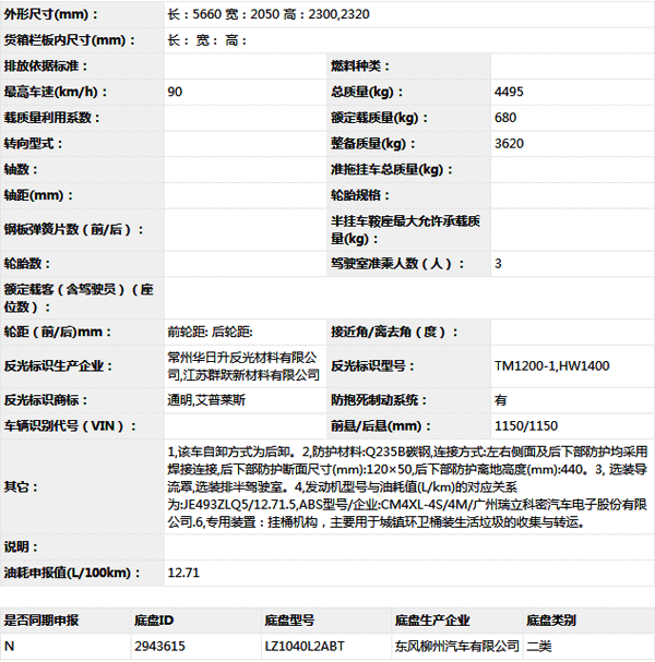 公告型號 CLW5040ZZZL5