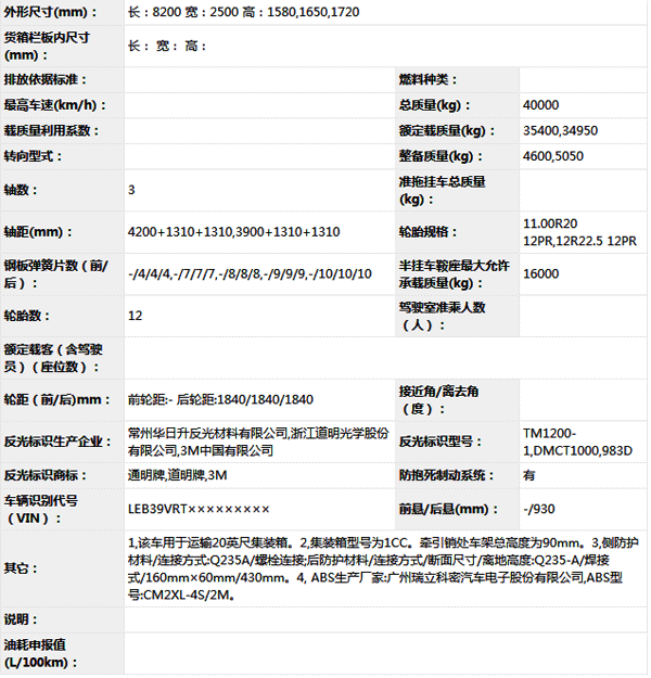 柳州乘龍福獅牌LFS9406TJZ集裝箱運輸半掛車