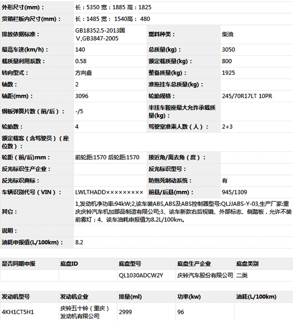 慶鈴汽車QL1030ADCW2多用途貨車