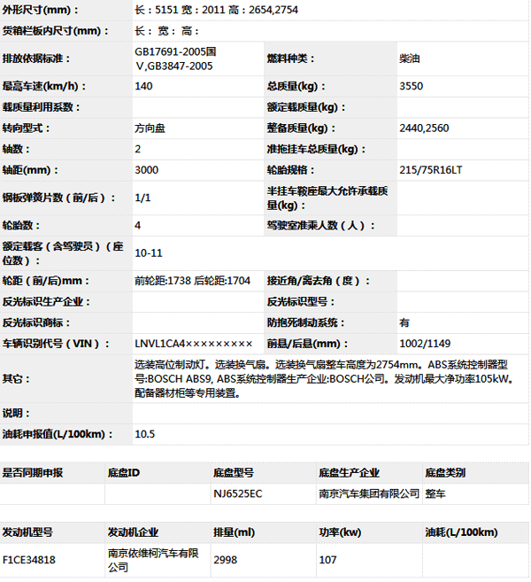 公告型號 NJ5045XYBDE