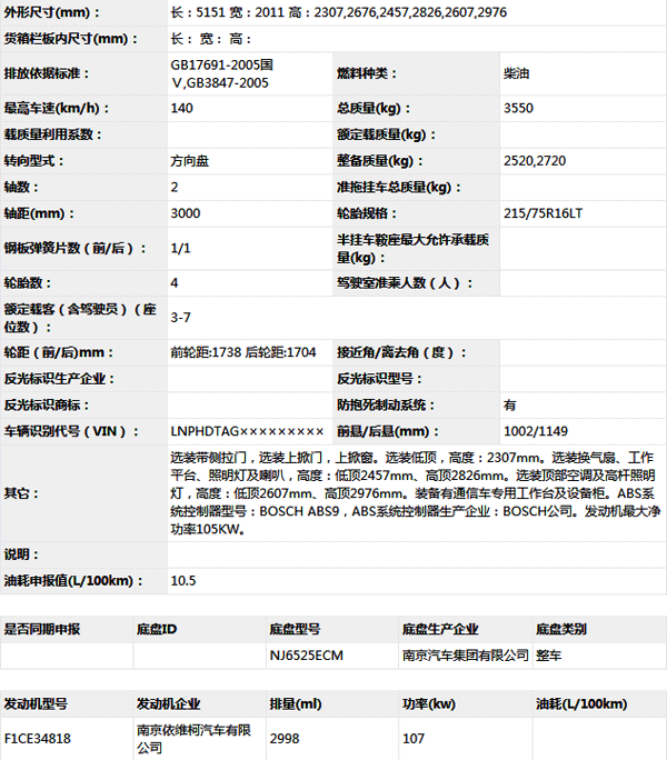 南京汽車依維柯牌NJ5045XTXDE通信車