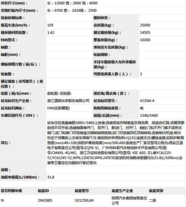公告型號 SX5250XLCLA549