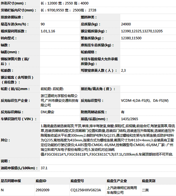 公告型號 CQ5256XXYHXVG623AB