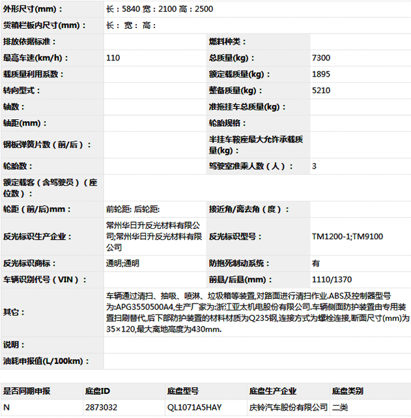 公告型號 CHD5071TSLQLE5