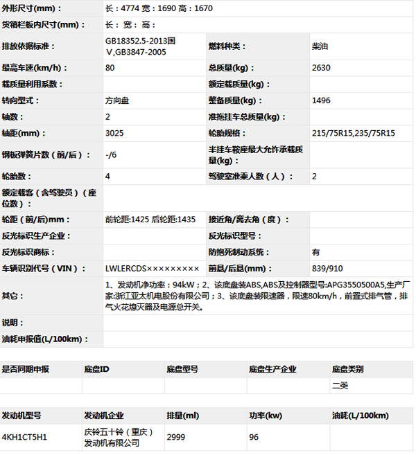 慶鈴汽車五十鈴牌QL1033CDCAY多用途貨車底盤