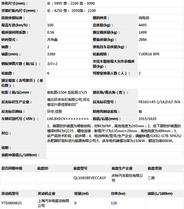 慶鈴牌QL5041XXYBEVECCA1純電動廂式運輸車