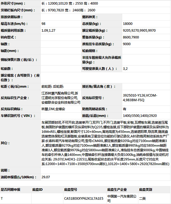 公告型號 CA5180XXYP62K1L7A1E5