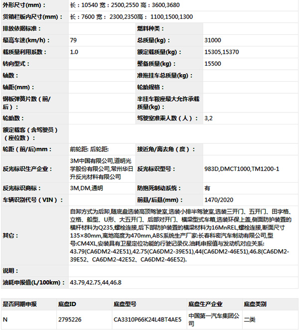 公告型號 CA5310ZLJP66K24L4T4AE5