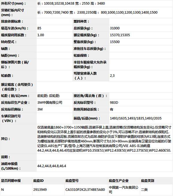 公告型號 CA5311ZLJP2K2L3T4E5A80