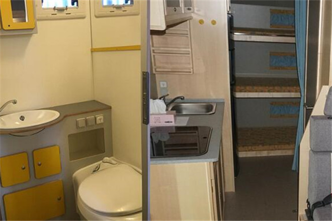 備注 1.頂部封閉,不可開啟;2.車廂內(nèi)主要專用裝置:桌椅、睡具、炊事設施、衛(wèi)浴設施等;3.側面及后下部防護為裙邊結構,后部離地高度為450mm;4.發(fā)動機凈功率190kw;ABS系統(tǒng)型號:ESP 8.1,生產(chǎn)廠家:德國BOSCH.