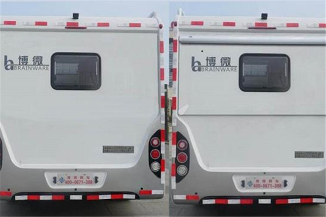 備注 1.頂部封閉,不可開啟;2.車內(nèi)裝備桌椅,睡具,衛(wèi)生設(shè)施,廚房設(shè)備等設(shè)施;3.外部選裝遮雨棚、不同位置的門窗和儲物箱,選裝無擴展艙;4.兩側(cè)及后下部為裙邊式圍板防護替代側(cè)后防護,側(cè)防護離地高度290mm,后防護離地高度385mm;5.僅選用發(fā)動機型號為F1CE34818,最大凈功率105kW,ABS系統(tǒng)控制器型號為BOSCH ABS8,廠家為博世汽車部件(蘇州)有限公司.