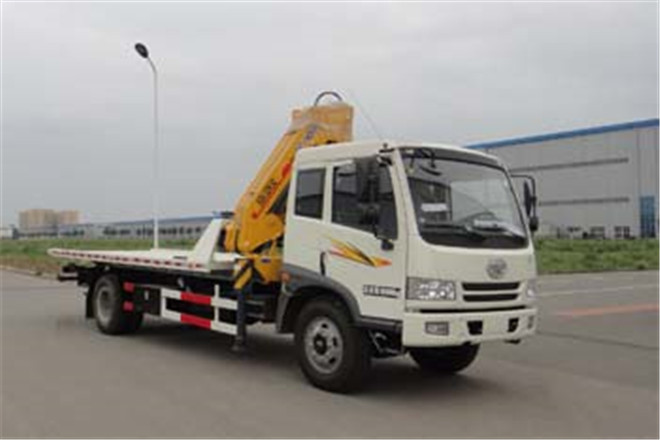 備注 1.托舉質(zhì)量為5710kg;2.后伸:408mm; 3.此款車僅選用5000mm軸距。4.吊機(jī)型號SQ6.3Z,吊機(jī)質(zhì)量2228kg,吊機(jī)最大起升載荷6300kg.5.隨底盤擴(kuò)展駕駛室.6.側(cè)防護(hù)離地高度500mm,截面尺寸為60×40mm,材料為Q235,螺栓連接.后部為清障車專用裝置替代后防護(hù),專用裝置離地450mm.7.ABS生產(chǎn)企業(yè)/型號:長春科密汽車制動有限公司/CM4XL