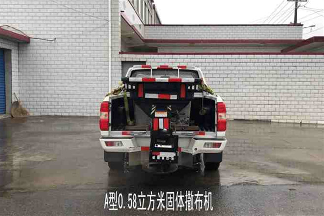 備注 該車用于冬季除雪,后部固體撒布機為專用裝置;作業(yè)時可裝配除雪鏟,選裝后部撒布機,選裝A型0.58立方米固體撒布機時,整備質量1815kg,額定載質量370kg,整車尺寸在誤差內不計;ABS型號/生產廠家:EV5010/博世汽車部件(蘇州)有限公司.