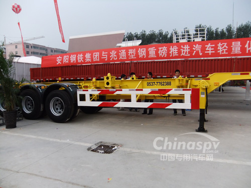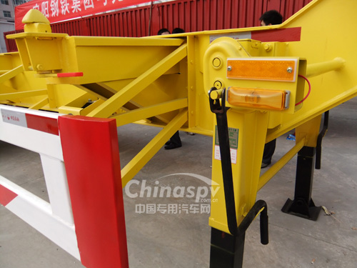 其它:該車僅能裝運(yùn)40尺集裝箱,為小鵝頸式結(jié)構(gòu),牽引銷處的車架總高度為210mm。