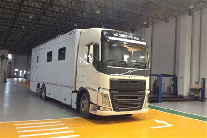 備注 頂部封閉,不可開啟;該車側(cè)防護和后防護為裙邊結(jié)構(gòu),側(cè)防護離地高為400mm,后防護最下部離地高度為490mm.可選裝后爬梯,不同形式側(cè)拉箱,遮陽棚等. ABS型號:EBS7 ECU ,生產(chǎn)廠:KNORR.專用裝置:衛(wèi)星天線,指揮設(shè)備,發(fā)電機, 發(fā)動機最大凈功率為309kw.選裝鋁骨架鋁蒙皮時,整備質(zhì)量為22380kg,總質(zhì)量為22510kg.擴展一種新的廂體外形和內(nèi)部照片.