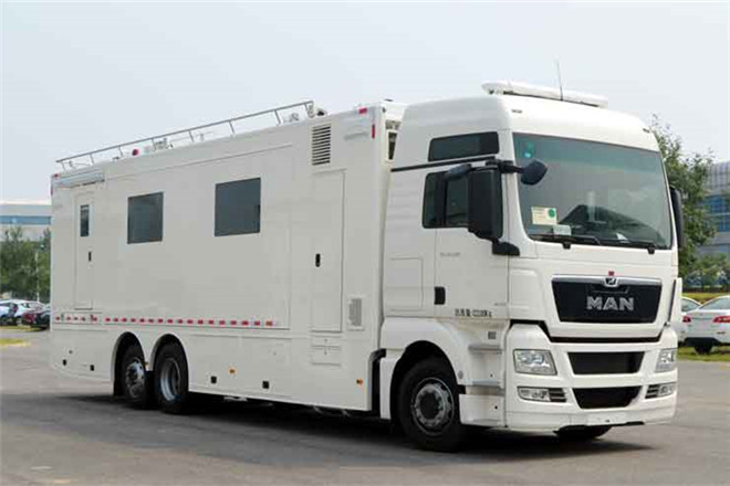 備注 頂部封閉,不可開啟;該車應(yīng)在側(cè)面和后部安裝車身反光標(biāo)識;側(cè)防護(hù)為裙邊結(jié)構(gòu),側(cè)防護(hù)離地高280mm,后防護(hù)離地高度為400mm. ABS型號:0 486 106,生產(chǎn)廠:KNORR;專用裝置:升降照明系統(tǒng),攝像系統(tǒng),發(fā)電機(jī),UPS,電氣控制系統(tǒng)等,用于指揮現(xiàn)場作業(yè),發(fā)動機(jī)最大凈功率為353kw.