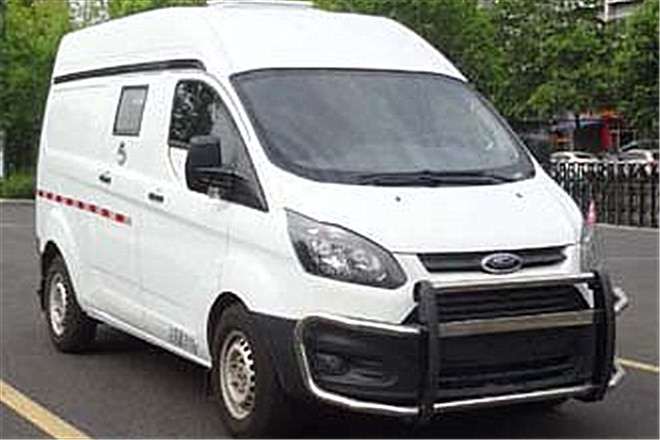 備注 選裝無(wú)前后防撞保險(xiǎn)杠,另一種前保險(xiǎn)杠樣式;選裝車(chē)后攝像頭或頂部攝像頭布置樣式,后單開(kāi)門(mén),中門(mén)拉手及玻璃樣式,中門(mén)無(wú)射擊孔(車(chē)內(nèi)隱蔽式射擊孔),隨底盤(pán)選裝前臉,輪輞,低頂;基準(zhǔn)車(chē)帶前后防撞保險(xiǎn)杠車(chē)長(zhǎng)5571mm,前懸1154mm,后懸1117mm;選裝無(wú)前后防撞保險(xiǎn)杠,對(duì)應(yīng)車(chē)長(zhǎng)5341mm,前懸1014mm,后懸1027mm;選裝單獨(dú)裝前防撞保險(xiǎn)杠車(chē)長(zhǎng)5481mm;選裝單獨(dú)裝后防撞保險(xiǎn)杠車(chē)長(zhǎng)5431mm;基準(zhǔn)車(chē)為中頂,車(chē)高2425mm,隨底盤(pán)選裝低頂,車(chē)高2080mm;選裝電動(dòng)天窗,中頂車(chē)高2370mm,低頂車(chē)高2020mm;選裝車(chē)后頂部攝像頭,中頂車(chē)高2460mm,低頂車(chē)高2110mm;額定載客5人對(duì)應(yīng)載質(zhì)量595kg;額定載客6人對(duì)應(yīng)載質(zhì)量530kg;隨底盤(pán)裝ABS,型號(hào):EV5051,生產(chǎn)廠:博世汽車(chē)部件(蘇州)有限公司;DURATORQ4D206發(fā)動(dòng)機(jī)最大凈功率89kW,對(duì)應(yīng)油耗值7.6L/100km;主要專(zhuān)用裝置防彈防暴運(yùn)鈔艙.可選裝ETC.