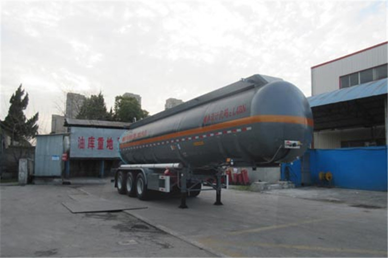 備注 罐體有效容積28.5立方米,罐體總?cè)萘?0立方米.罐體外形尺寸(mm):外罐長10440直徑前φ1908后φ2008.危險貨物運輸車輛的類型為:FL型,準(zhǔn)運介質(zhì)的最大密度為1141千克/立方米,選裝側(cè)面防護(hù),選裝擋泥板樣式.選裝前部帶爬梯,選裝側(cè)面尾部操作箱、側(cè)面工具箱樣式,選裝尾部標(biāo)志板安裝位置,選裝集液槽數(shù)量及位置,選裝護(hù)肩及與之相匹配的扶手.選裝滅火器安裝位置及樣式.選裝握手盒結(jié)構(gòu),選裝分段裝配式大梁和T型梁結(jié)構(gòu)、支腿支架樣式、側(cè)防護(hù)支架樣式,選裝后部上橫梁結(jié)構(gòu)、材料及牌照板位置,選裝軟管存放箱、側(cè)面結(jié)構(gòu)及穿線管,選裝正前、正后爬梯及頂部燈支架新結(jié)構(gòu).該車裝空氣懸架.ABS廠家、型號:威伯科(上海)管理有限公司,4005000880或廣州瑞立科密汽車電子股份有限公司,CM2XL-4S/2K(4S/2M)或浙江萬安科技股份有限公司,VIE-TABSⅡ或廣州市西合汽車電子裝備有限公司,XH-GQ4S2M-E01.EBS廠家、型號:克諾爾商用車系統(tǒng)企業(yè)管理(上海)有限公司,K11061XVXX或瀚德汽車產(chǎn)品(蘇州)有限公司,4S2M或威伯科(上海)管理有限公司, 4801020640或浙江萬安科技股份有限公司,VIE TEBS-I或廣州瑞立科密汽車電子股份有限公司,CM-TEBS.側(cè)防護(hù)材料為鋁合金,螺栓連接,后防護(hù)材料為鋁合金或Q235,螺栓連接,后防護(hù)斷面尺寸80×150mm,后防護(hù)材料為Q235,螺栓連接.后防護(hù)斷面尺寸65×150mm,離地高495mm.采用適用于牽引危險品運輸半掛車的牽引車.