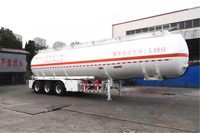 備注 罐體有效容積42.8立方米,罐體總?cè)萘?5立方米.罐體外形尺寸( mm):外罐長12200外徑前φ2108后φ2258.危險(xiǎn)貨物運(yùn)輸車輛的類型為:FL型.準(zhǔn)運(yùn)介質(zhì)的最大密度為751千克/立方米.該車裝空氣懸掛.選裝側(cè)面防護(hù)裝置,選裝滅火器安裝位置及樣式, 選裝正前帶爬梯、正后帶箱子及后爬梯在箱上,選裝擋泥板樣式,選裝護(hù)肩及與之匹配的扶手,選裝集液槽數(shù)量、位置及與之匹配的扶手,選裝后部上橫梁結(jié)構(gòu)、材料及牌照板位置,選裝握手盒結(jié)構(gòu),選裝分段裝配式大梁和T型梁結(jié)構(gòu)、支腿支架樣式、側(cè)防護(hù)支架樣式,選裝軟管存放箱、側(cè)面結(jié)構(gòu)及穿線管,選裝正前、正后爬梯及頂部燈支架新結(jié)構(gòu),選裝尾部標(biāo)志板安裝位置,選裝側(cè)面尾部操作箱,選裝側(cè)面工具箱樣式.ABS廠家,型號:威伯科(上海)管理有限公司,4005000880或浙江萬安科技股份有限公司,VIE-TABS Ⅱ(4S2M)或廣州瑞立科密汽車電子股份有限公司,CM2XL-4S/2M或廣州市西合汽車電子裝備有限公司,XH-GQ4S2M-E01.EBS廠家,型號:克諾爾商用車系統(tǒng)企業(yè)管理(上海)有限公司,K11061XVXX或瀚德汽車產(chǎn)品(蘇州)有限公司,4S2M或威伯科(上海)管理有限公司, 4801020640或浙江萬安科技股份有限公司,VIE TEBS-I或廣州瑞立科密汽車電子股份有限公司,CM-TEBS.側(cè)防護(hù)材料為鋁合金,螺栓連接;后防護(hù)材料為鋁合金,螺栓連接,選裝后防護(hù)材料Q235,螺栓連接,后防護(hù)斷面尺寸80×150mm,后防護(hù)材料為Q235,螺栓連接,后防護(hù)斷面尺寸65×150mm,離地高495mm.采用適用于牽引危險(xiǎn)品運(yùn)輸半掛車的牽引車.