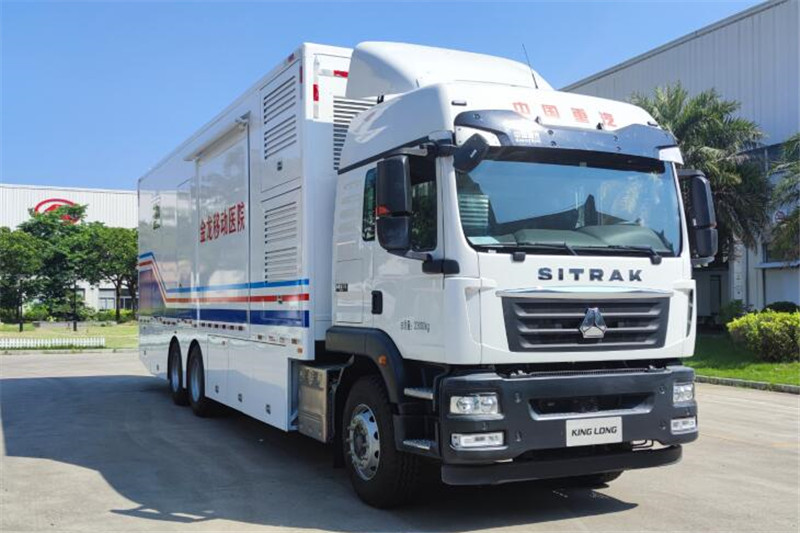 備注 1.車廂頂部封閉不可開啟;2.專用裝置及功能:配有工作臺,該車裝有手術(shù)床、手術(shù)燈、醫(yī)療器械柜、控制柜、醫(yī)用洗手池等,主要用于手術(shù)治療等,選裝CT設(shè)備,主要用于CT檢查,用于醫(yī)療診斷、健康體檢等。3.該車裝有醫(yī)療使用應(yīng)急升降平臺,具有智能平衡調(diào)節(jié)液壓支撐裝置;液壓尾板收起時的水平長度為285mm,液壓尾板質(zhì)量為450kg;4.側(cè)防護(hù)和后防護(hù)裝置為裙邊結(jié)構(gòu),左、右側(cè)防護(hù)離地高度為350mm,后防護(hù)離地高度為500mm;5.選裝左右拓展艙,僅在駐車時使用;6.僅選用5775+1400mm軸距底盤,僅選用2/-/-,3/-/-懸架,僅選用MC07.27-60,MC07.31-60,MC07H.33-60,MC07H.35-60,WP7.270E61,WP7.300E61,WP8.350E61,MC07.33-60發(fā)動機(jī);7.ABS系統(tǒng)控制器生產(chǎn)企業(yè)/型號為采埃孚商用車系統(tǒng)(青島)有限公司/4460046300;選裝EBS,EBS系統(tǒng)控制器生產(chǎn)企業(yè)/型號為采埃孚商用車系統(tǒng)(青島)有限公司/EBS3;8.隨底盤選裝限速裝置,限速89km/h;9.該車型可選裝ETC車載裝置。