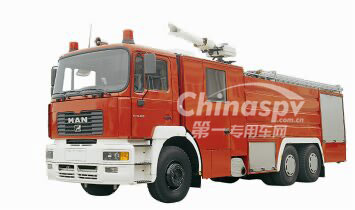 PM150型泡沫消防車系選用德國原裝MAN TGA33.430底盤,該車動力性能好,最大功率316kw,最高車速110km/h。
