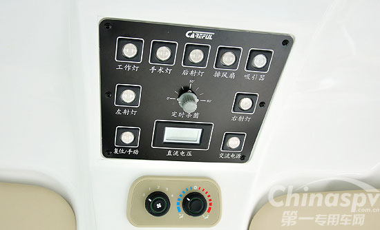 照明系統(tǒng):艙內(nèi)醫(yī)療專用燈帶、內(nèi)嵌式燈管、二次反射柔和光源設(shè)計、防眩目,車外左右照明,LED后射燈