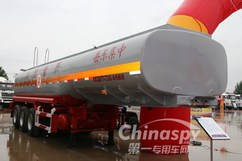 罐體總容積49立方米,采用高強度鋼設計,成型美觀,自重輕。整車采用骨架式結構設計,罐體受力均勻,車架前后均開有卸荷槽,有效的保護了罐體封頭,提高罐體強度,該創(chuàng)新已成功申請國家專利。罐底加裝有緊急切斷閥,起到了安全保護作用。